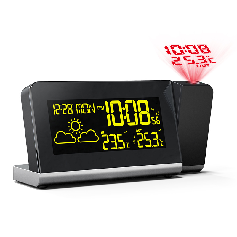 The projection feature allows you to display time and weather on a wall or ceiling for easy viewing during the night.